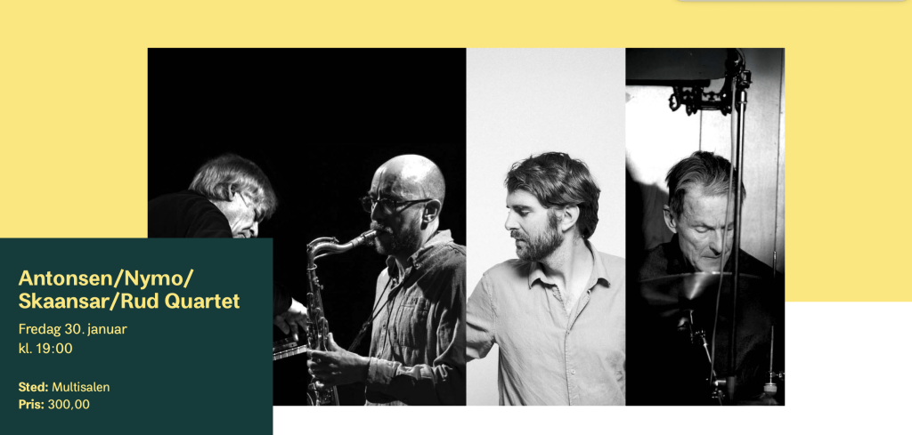 Det aller ypperste av norsk jazz møtes: Atle Nymo (tenorsaksofon), Ivar Antonsen (piano), Jo Fougner Skaansar (bass) og Askers egen Espen Rud (trommer).