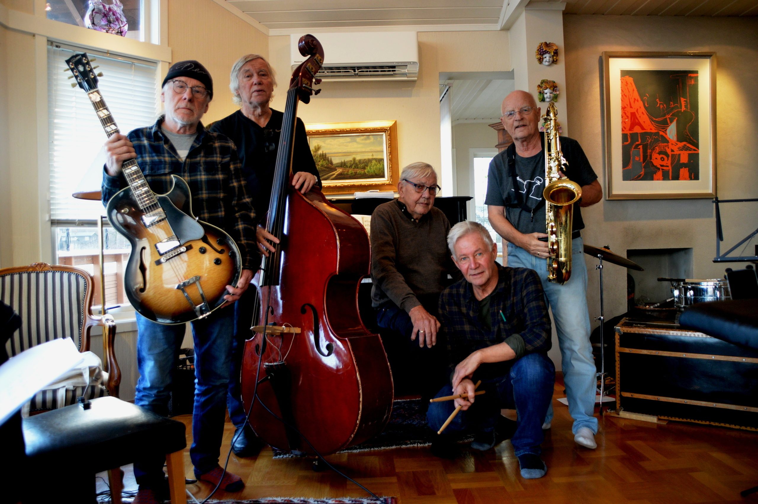 Bak tangentene sitter Hans Brovold, med et piano som glitrer av energi og eleganse. På trommer finner vi Ronny Skiold, som holder både band og publikum i bevegelse med sitt presise og lekne driv. Anders Bøhn på bass legger det solide fundamentet – en rytmisk motor med musikalitet i hver tone. Hans Mathias Thjømøe løfter det hele til nye høyder med sin varme tenorsax og elegante klarinettspill – rett fra hjertet av swingtradisjonen.